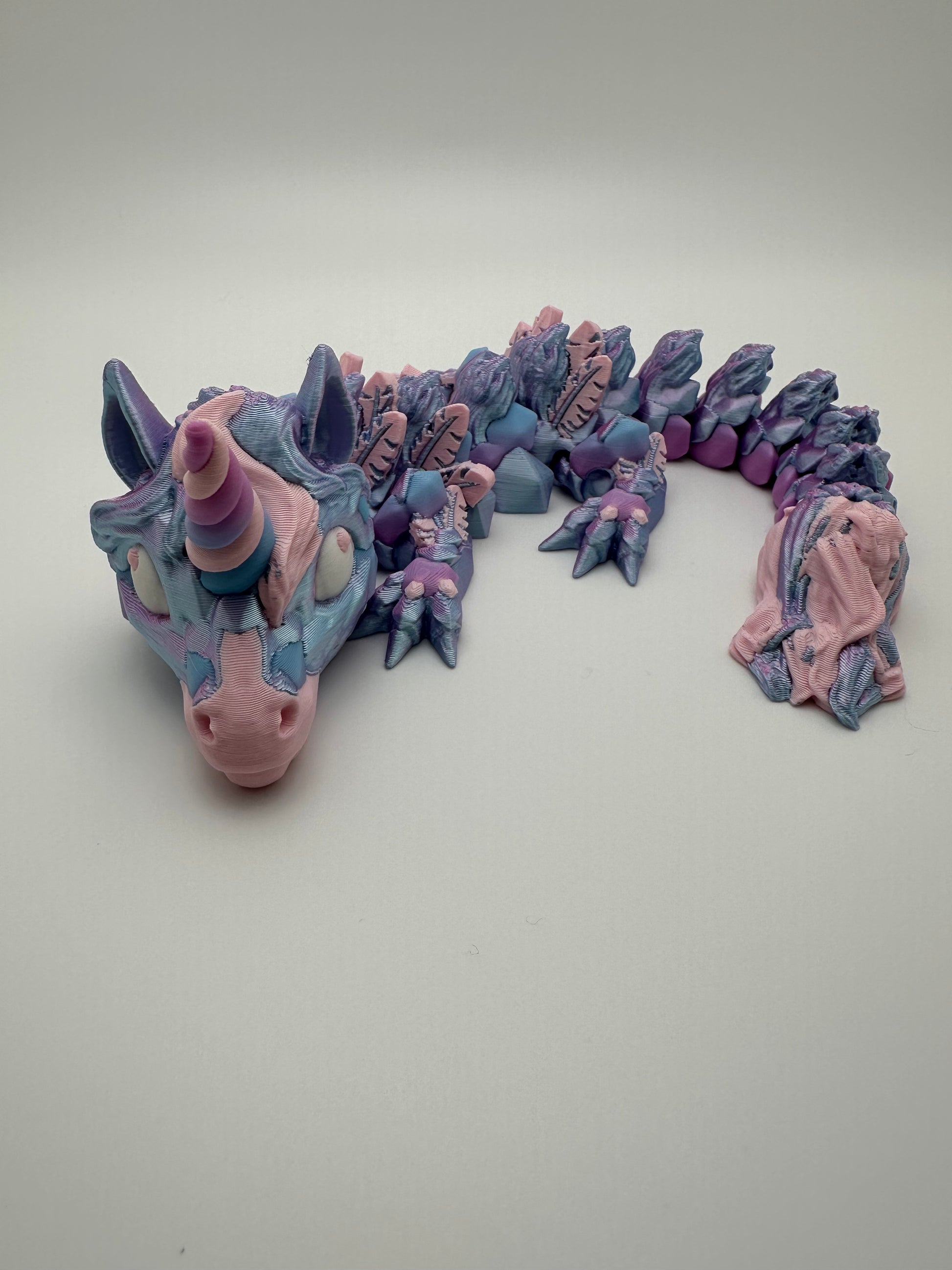 Design Credit: This enchanting Unicorn Dragon Flexi is designed by CinderWing3D, and we are proud to bring their magical creation to life.